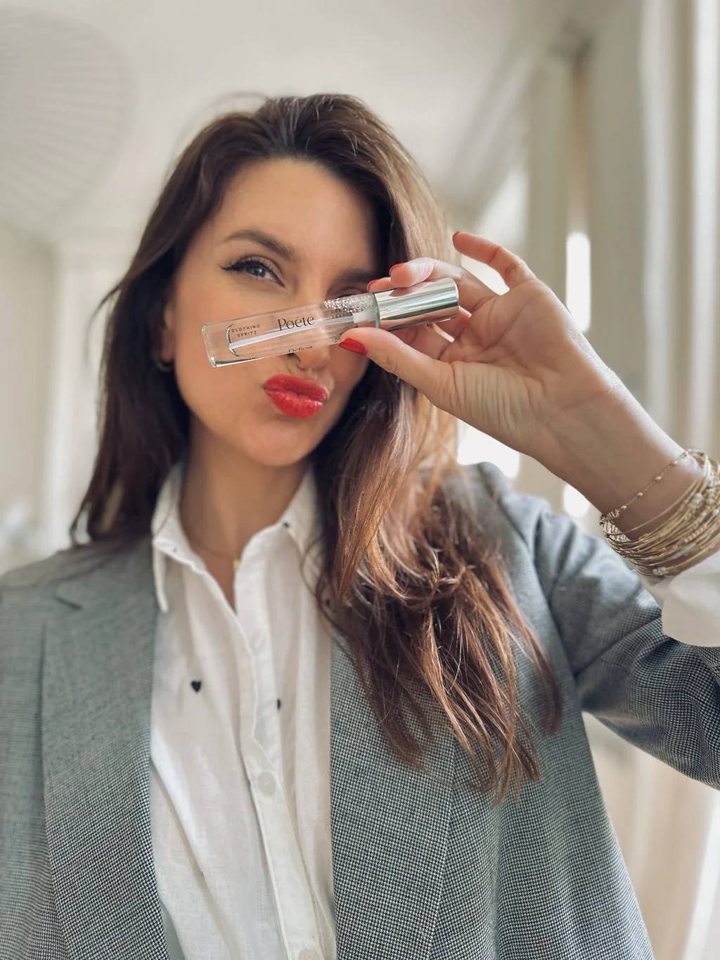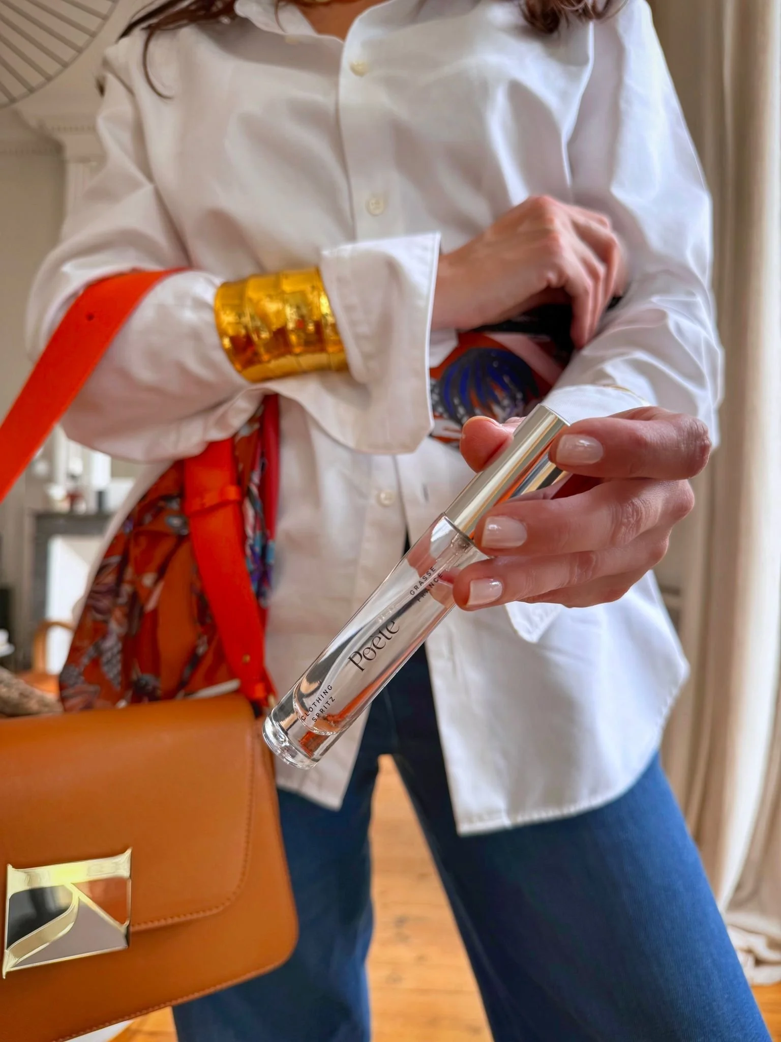 Just before you step outside in your simple (and simply fabulous) white shirt, there’s one important accessory to add; Poète Clothing Spritz™. Lightly spritz your shirt, and let the fine French fragrance settle into the fabric. Subtle, intimate, almost imperceptible. It’s not seen, but it’s felt. Because style isn’t just visual; it’s sensory.